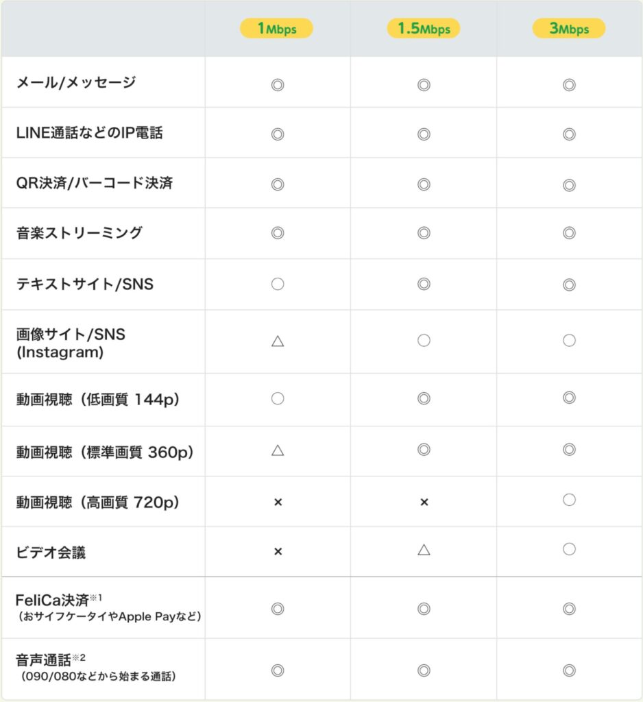 更にいうのであれば、そもそも1Mbpsの通信速度は、ドコモの格安料金プラン「ahamo」やソフトバンクサブブランド「LINEMOベストプランV」の通信制限後の速度と同じ。