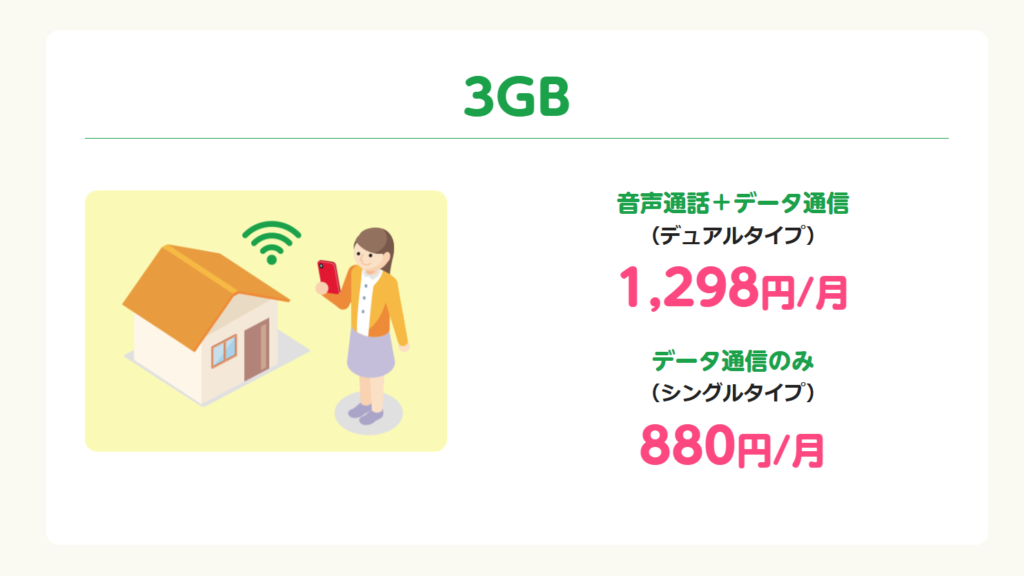| 3GB | 1,298円 | 385円 | 1,683円 |