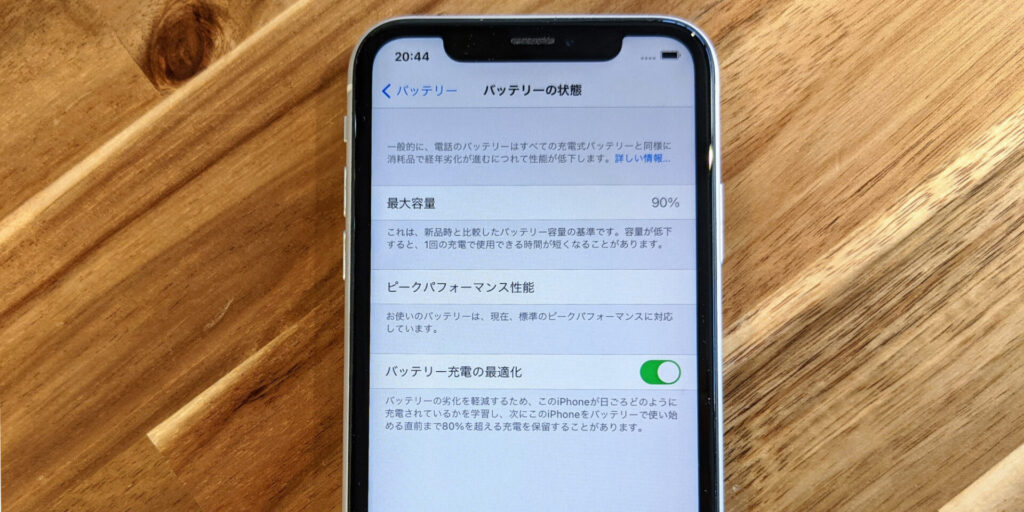 まず、中古スマホ選びで最も気を付けたいポイントが「バッテリー最大容量」が、どれだけ減っているかだ。