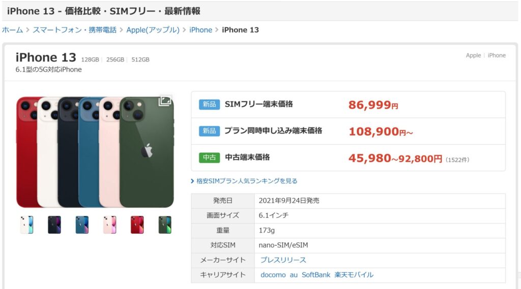というわけでここまで中古iPhoneのメリットとデメリットについて解説をしてきた。これらを踏まえて、俺のおすすめ機種は「iPhone13シリーズ」になる。