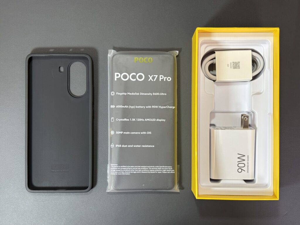 POCO X7Proの主なメリットは次のとおり。この価格帯でゲーム性能も高く、純正ケースと最初からフィルムが張ってある点が地味に嬉しい。