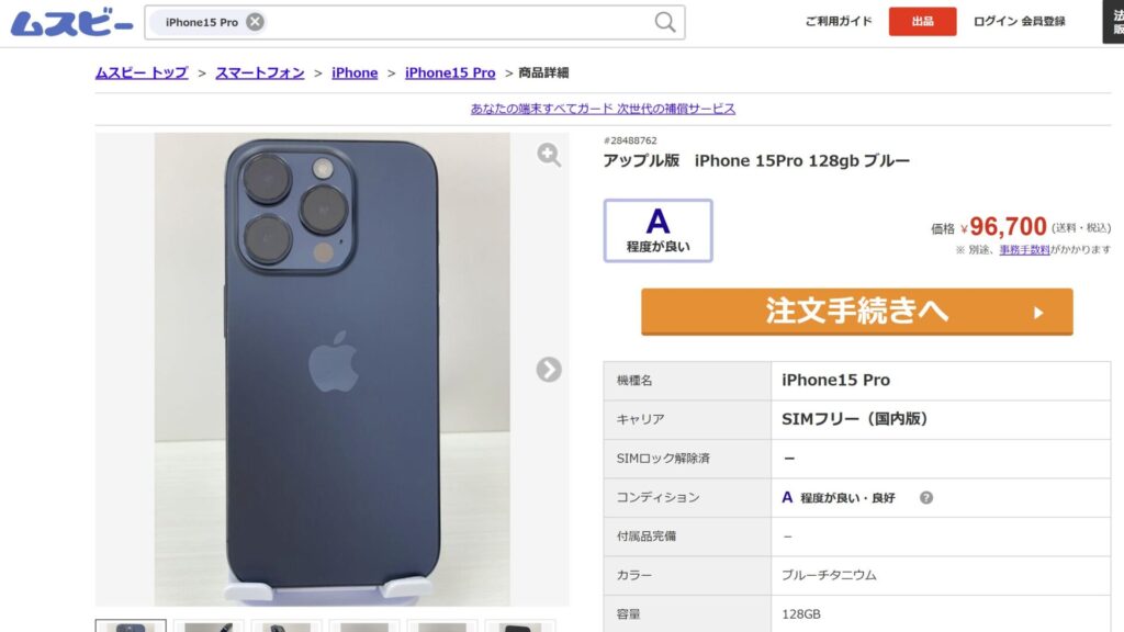 対して白ロム取り扱い店としては有名なムスビーだと。96,700円。しかもこっちはAランク品でバッテリー残量86%。勿論機種にもよるが、わざわざpovoで買う必要はない。